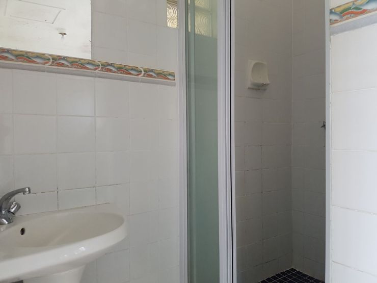 En-suite shower and toilet, built in cupboards, spacious open plan living area. Fitted kitchen. Ample space in bathroom for top loader washing machine and cabinet. A few open parking spaces.